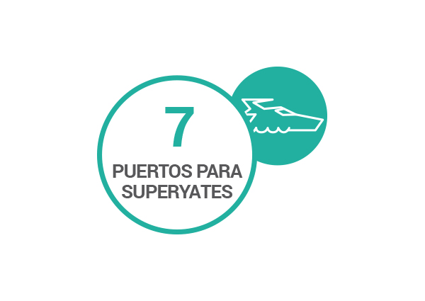 En Catalunya hay 7 puertos con capacidad para acoger superyates (más de 24 metros de eslora): Port Tarraco (Tarragona); Vilanova Gran Marina (Vilanova i la Geltrú); Marina Port Vell (Barcelona); Port Olímpic (Barcelona); Port Fòrum (Barcelona); Mataró Marina Barcelona (Mataró); Port Roses (Roses).